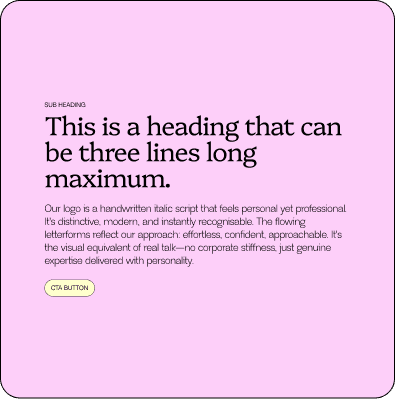 The typography pairs a sophisticated serif for headings with a handwritten italic script for the logo. It communicates expertise without coldness—confident, modern, and distinctly memorable. Premium treatments delivered with genuine personality.